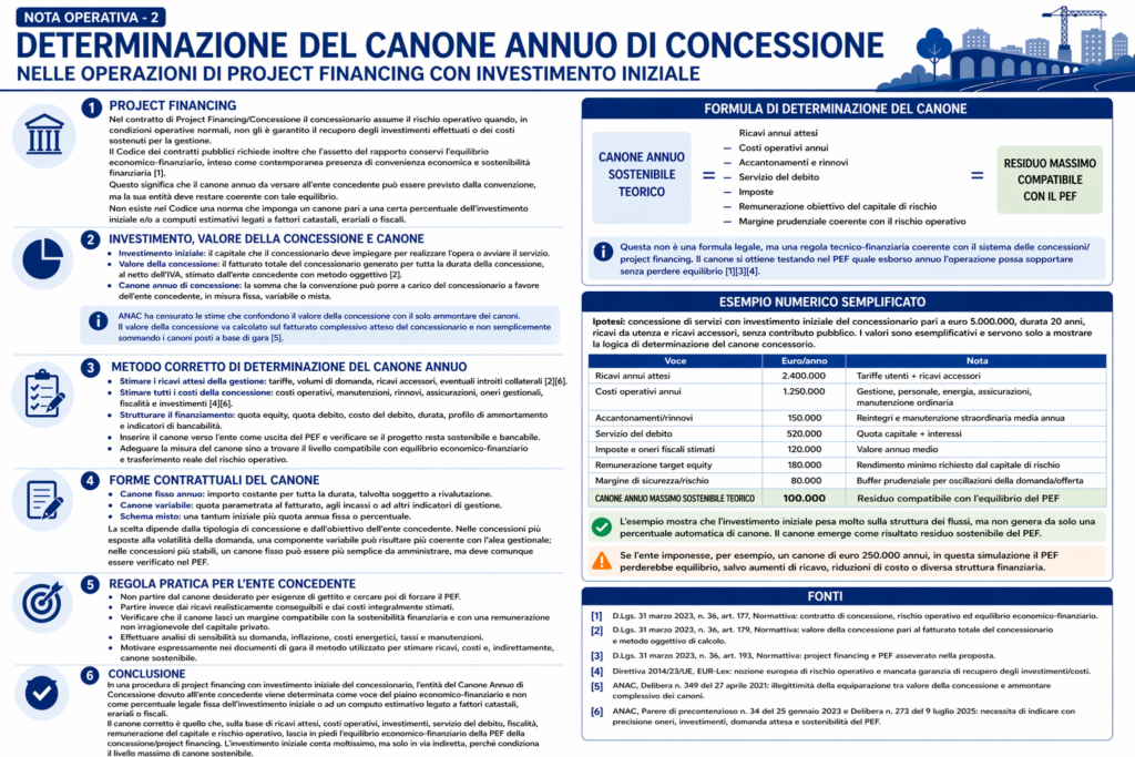 Nota Operativa – 2 | Determinazione del Canone Annuo di Concessionenelle operazioni di project financing con investimento iniziale